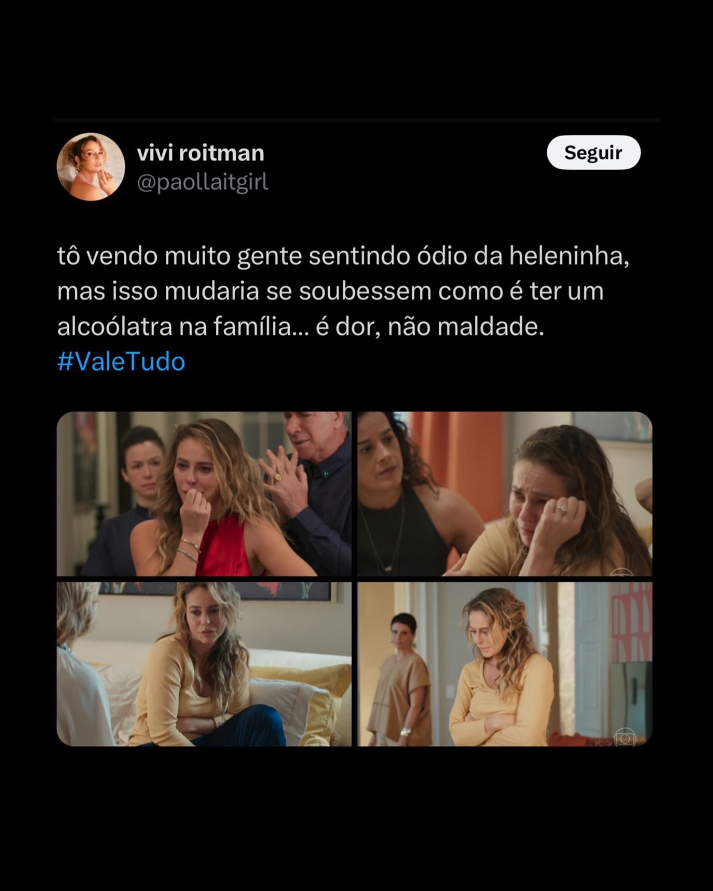 Essa frase da Heleninha me fez pensar. Crescemos ouvindo que o “amor” é o final feliz. E se já é difícil para todas mulheres, é mais ainda para quem sofre com o alcoolismo e tenta anestesiar uma dor com outra.