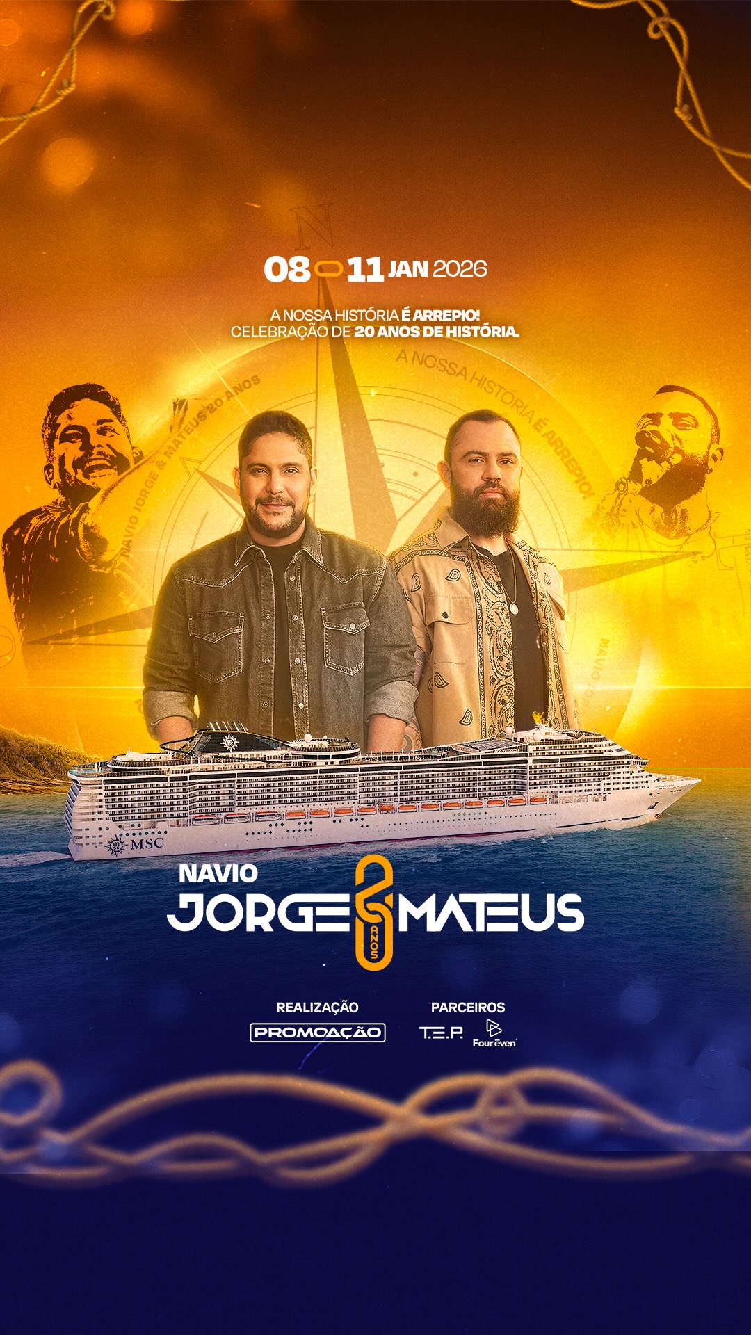 🌊✨ De Itumbiara para o mundo… 20 anos de histórias, momentos e conquistas. Agora, chegou a hora de viver essa celebração no meio do oceano! 🌅