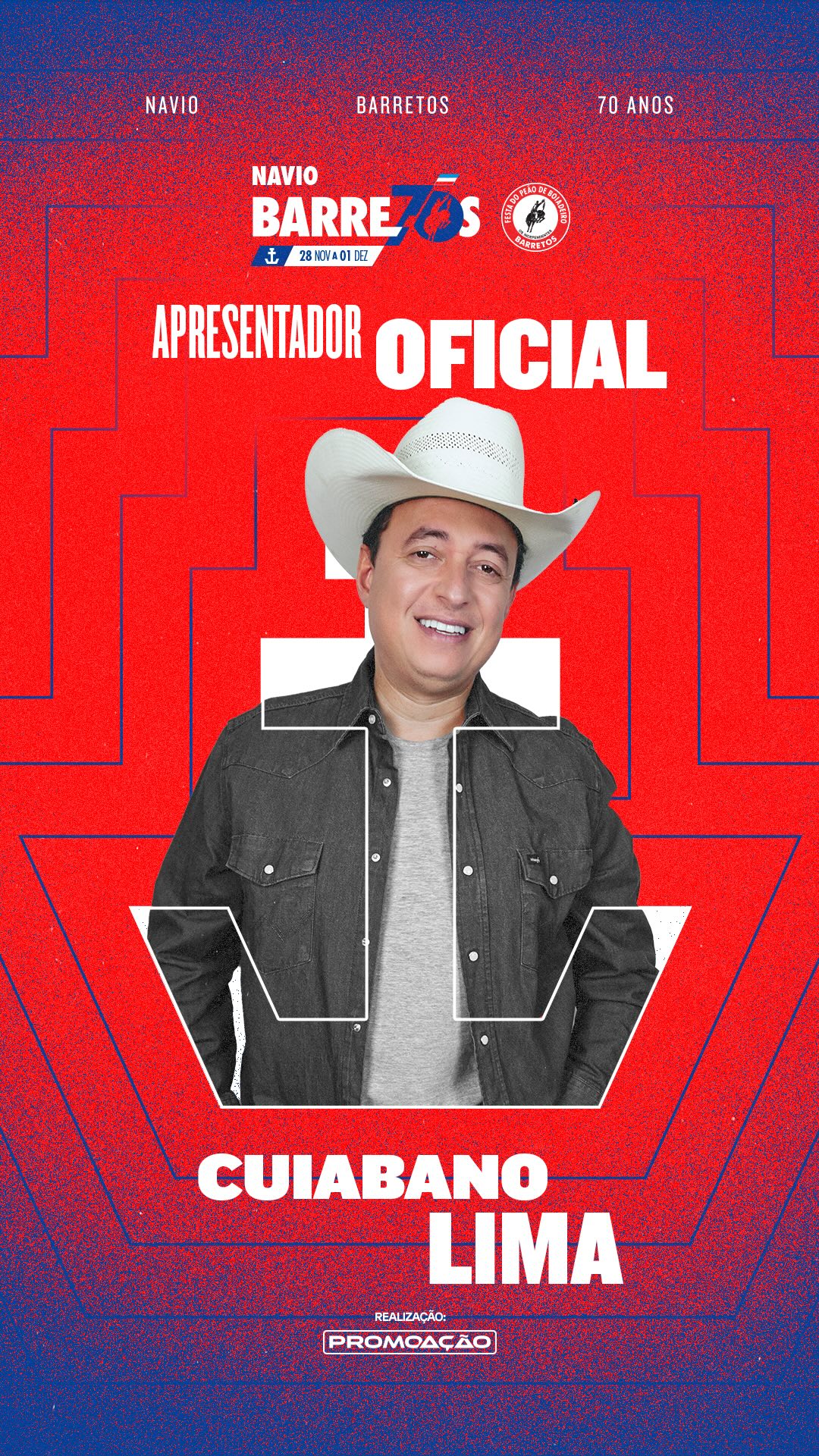 TÁ CONFIRMADO: Cuiabano Lima é o apresentador oficial da festa do peão em alto-mar. A voz que já traz energia para a arena de Barretos, também vai comandar essa celebração histórica a bordo do Navio Barretos 70 Anos! 🛳️🎤🐂