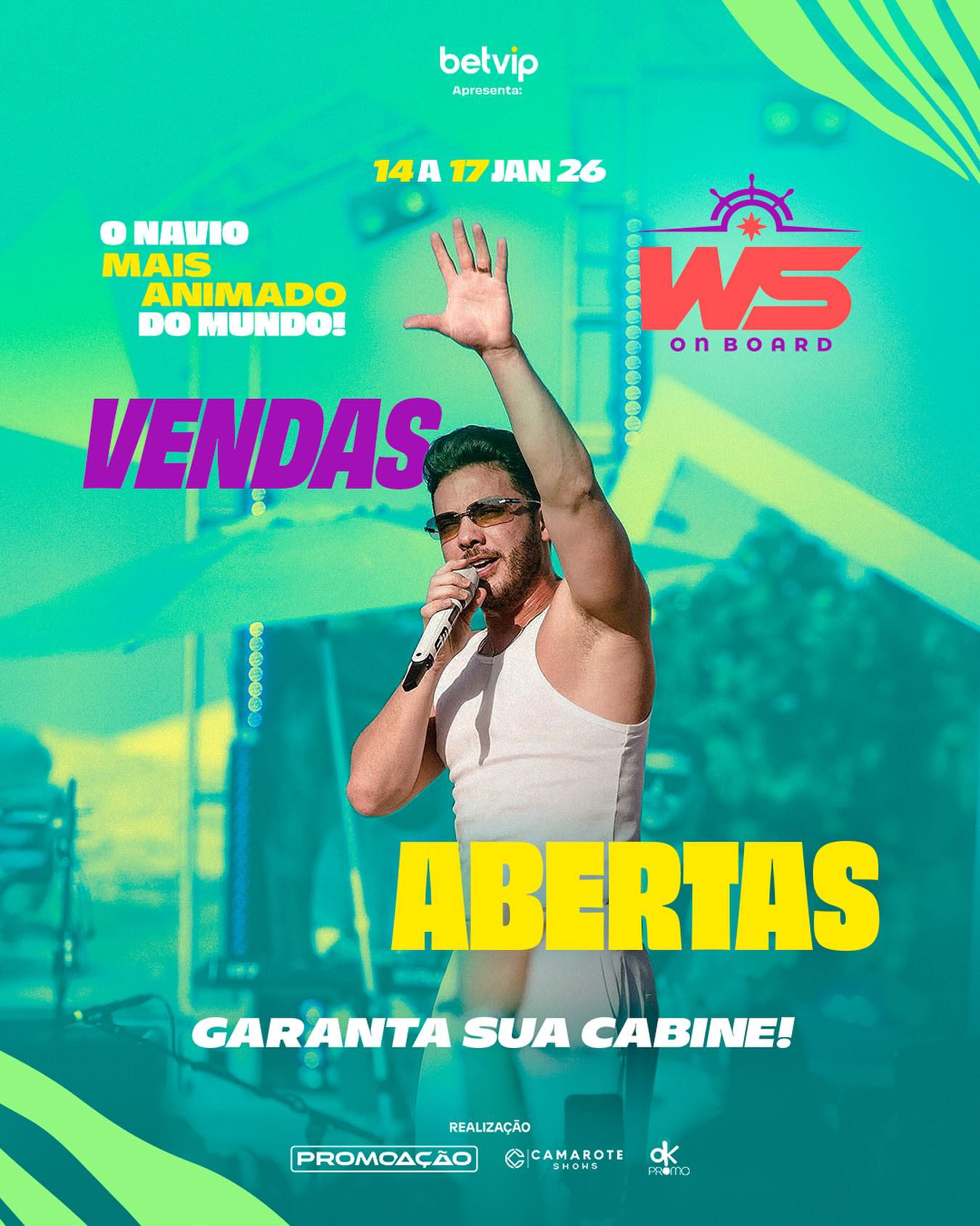 O WS on Board vai ser o evento mais incrível do seu verão, então não dá pra ficar de fora. 😎🔥 Wesley Safadão te convida para viver noites inesquecíveis em alto-mar, vamos juntos viver o invivível. Não perca tempo, confirme hoje sua presença! 🎉 #SEGUEOLÍDER